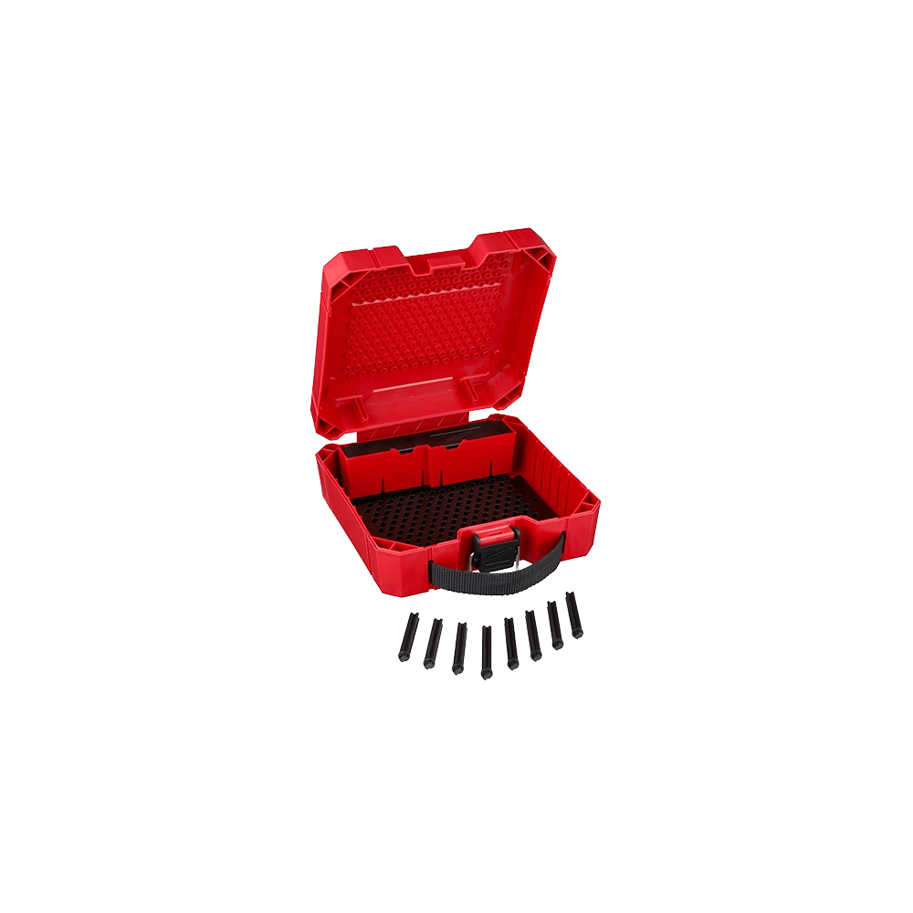 The Milwaukee 49-56-1007 Large Hole Saw Case is designed for ultimate customization and organization of your hole saws. Featuring an innovative interchangeable peg system, this case allows for personalized configurations to securely store various Milwaukee hole saw types, including Hole Dozer, Hole Dozer with Carbide Teeth, BIG HAWG with Carbide Teeth, and Diamond Max. The removable accessory box provides additional space for arbors, pilot bits, and other essentials, or can be removed entirely to accommodate more and larger hole saws.