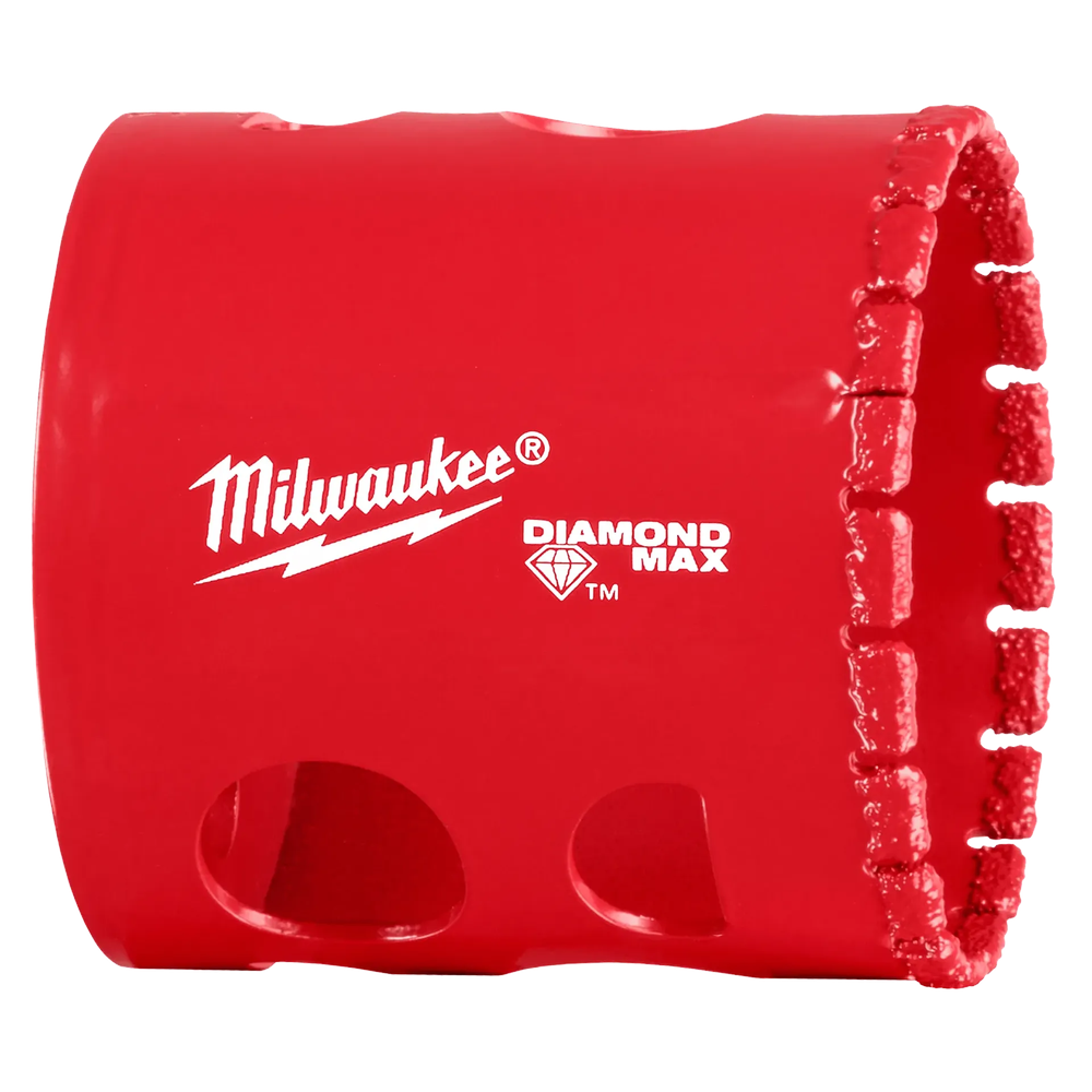 The Milwaukee Diamond Max 1-3/4' Hole Saw is engineered for superior performance in the most demanding applications, offering up to 20X longer life and unmatched cutting in porcelain. It features higher-grade diamonds for maximum durability and retention, along with an improved diamond grit that provides faster cutting and less slipping. Designed for more cutting with less clogging, this hole saw ensures efficient material removal and clean, easy cuts. It's an ideal solution for cutting anchoring and clearance holes in a wide variety of hard materials.