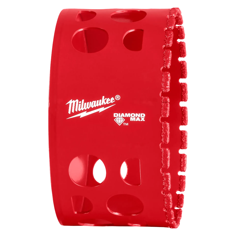Experience unmatched cutting performance with the Milwaukee 49-56-5674 DIAMOND MAX Hole Saw. Engineered with higher-grade diamonds for superior durability and retention, this 3-1/4' hole saw delivers up to 20X longer life, especially in demanding materials like porcelain. Its improved diamond grit provides faster starts, less slipping, and more efficient cutting with reduced clogging, making it ideal for a wide range of applications.