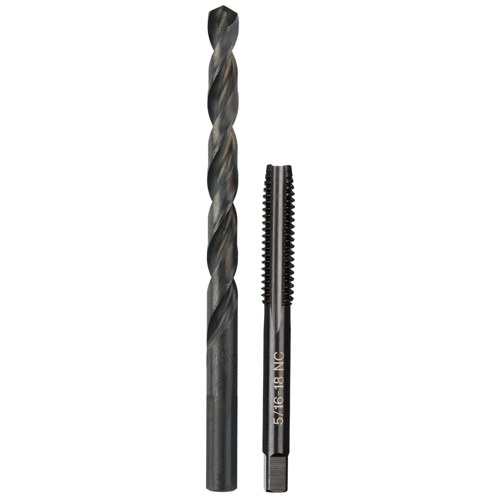 This Milwaukee 49-57-5542 set provides a precision-machined 5/16'-18 NC straight flute plug tap and an F drill bit for creating or repairing clean, accurate internal threads. Engineered for durability and corrosion resistance, this set is ideal for common metal applications including brass, aluminum, and mild steel. The tap features a square shank compatible with standard tap handles and is designed for through-hole threading, while the drill bit is optimized for use with drill drivers. For optimal results, it is recommended to use cutting fluid with this set.