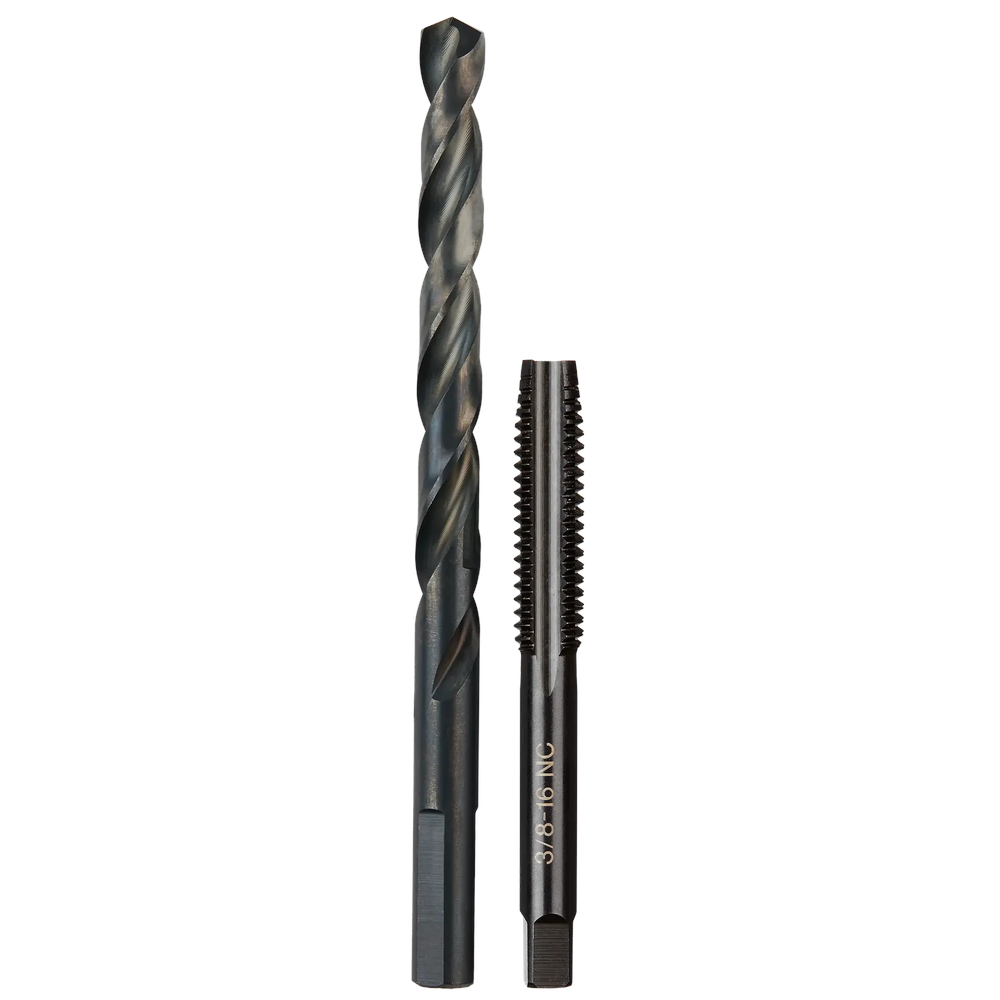 This Milwaukee Straight Flute Plug Tap & Drill Bit set is engineered for precision and durability, allowing you to create or repair clean, accurate internal threads with ease. The set includes a 3/8'-16 NC straight flute plug tap and a 5/16' drill bit, perfect for piloting holes. Constructed from high-carbon steel with a protective black oxide coating, these tools resist corrosion and are built to last. Laser-etched sizing ensures clear, long-lasting markings, while the straight flute design is ideal for common threading applications in various metals like brass, aluminum, and mild steel. For optimal results, use with cutting fluid.