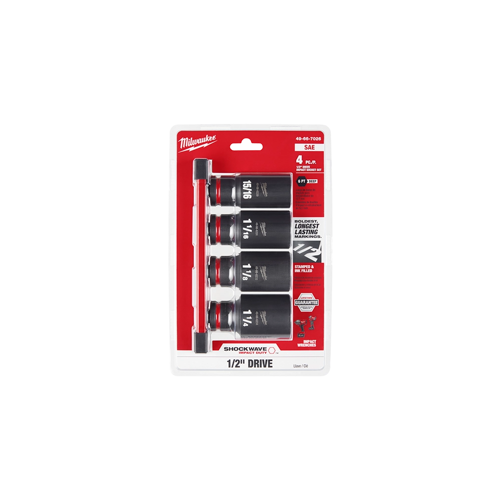 Engineered for the most demanding industrial maintenance and assembly tasks, the Milwaukee 49-66-7026 SHOCKWAVE Impact Duty socket set is built to withstand extreme torque and resist failure. These 1/2-inch drive deep sockets are constructed from forged alloy steel, providing exceptional strength and durability for high-duty cycle applications. The non-slip hex geometry ensures a secure grip to prevent fastener rounding, while high-visibility, ink-filled markings allow for quick and easy size identification in any lighting condition. This set is optimized for maximum power transfer and long-term reliability, making it an indispensable tool for professionals.