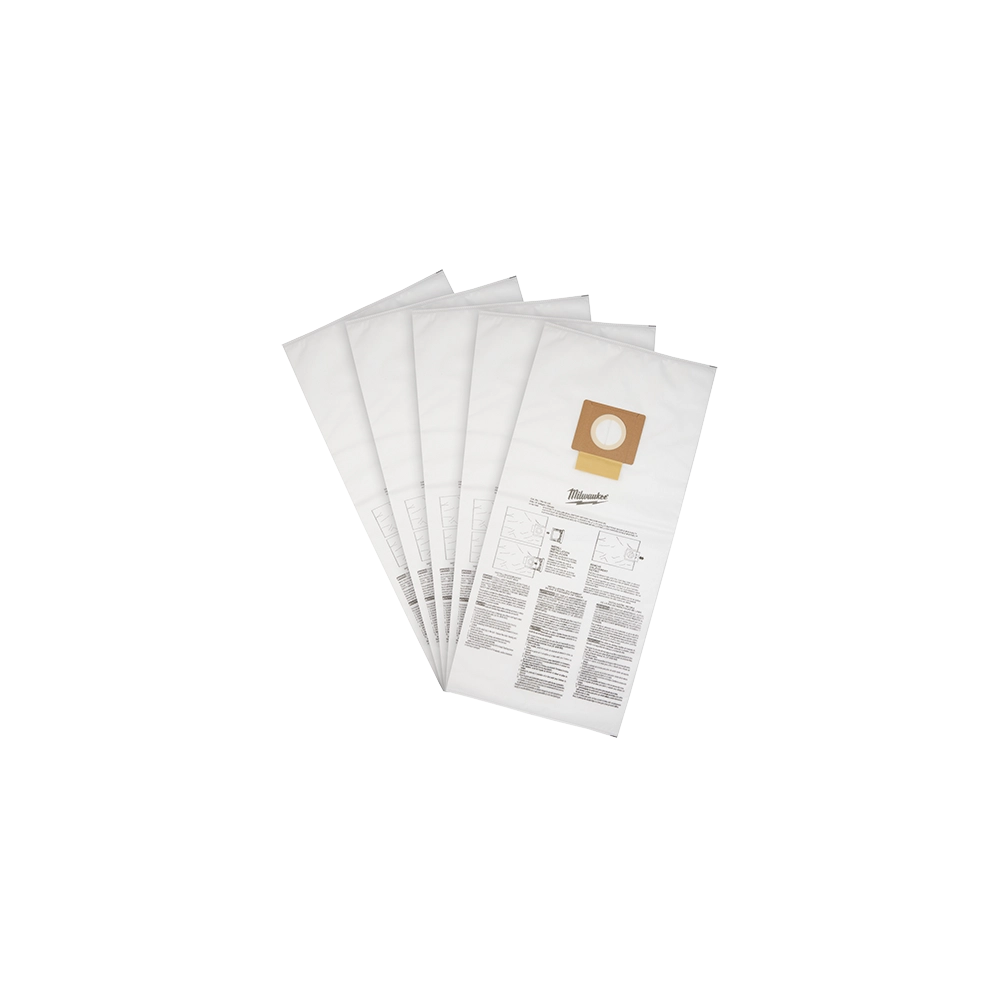Keep your workspace clean and your vacuum's filter protected with the Milwaukee 49-90-1999 Fleece Dust Bags. Designed for the Milwaukee M18 FUEL 12 Gallon Wet/Dry Vacuum (0930), these 5-pack disposable bags offer superior fine dust collection with 98.5% filter efficiency. They act as a crucial pre-filter, preventing fine particles from clogging the main vacuum filter, thereby extending its lifespan and maintaining optimal suction. The fully enclosed design ensures dust is contained for mess-free disposal, and the durable fleece material prevents rips and tears during use.