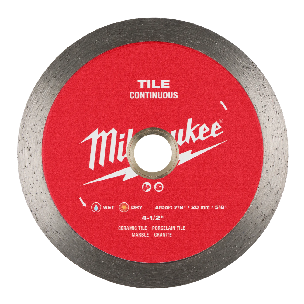 Experience precise and clean cuts with the Milwaukee 4-1/2' Continuous Tile Diamond Blade. Engineered with high-quality diamonds and a continuous rim, this blade delivers up to twice the life in tile and ensures smooth finishes on porcelain, ceramic, marble, and granite. The solid steel core provides enhanced control for accurate results, making it ideal for both wet and dry applications. Achieve professional-grade results on your tiling projects with this durable and efficient diamond blade.