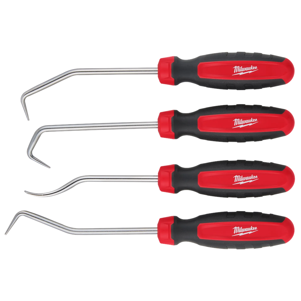 The Milwaukee 4pc Hose Pick Set is engineered to provide professional mechanics with superior durability and versatility for automotive maintenance. Each tool features an all-metal core that delivers up to 50% more durability, ensuring the handles remain secure even under significant leverage. Designed with specific angles for diverse applications, these picks allow for the efficient removal of stubborn hoses while maintaining precision and user comfort.
