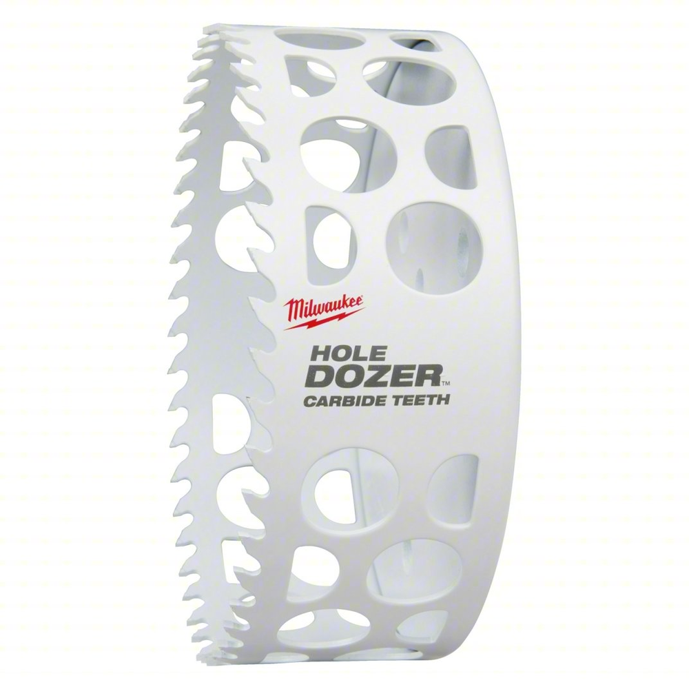Experience unparalleled cutting performance with the Milwaukee 5' HOLE DOZER with Carbide Teeth Hole Saw. Engineered with a robust 3 TPI design, this hole saw delivers rapid cuts while boasting the resilience of bi-metal and the extended lifespan of carbide teeth. It provides exceptional durability for general-purpose and demanding materials, cutting through stainless steel, cast iron, fastener-embedded wood, and more with remarkable ease. Its deep gullets ensure efficient material clearing, and the innovative ALL-ACCESS SLOTS minimize downtime by simplifying plug removal, thus boosting productivity. The optimized slot design also enhances pilot visibility for precise hole placement and promotes faster chip ejection to maintain cooler cuts. This hole saw is proudly made in the USA.