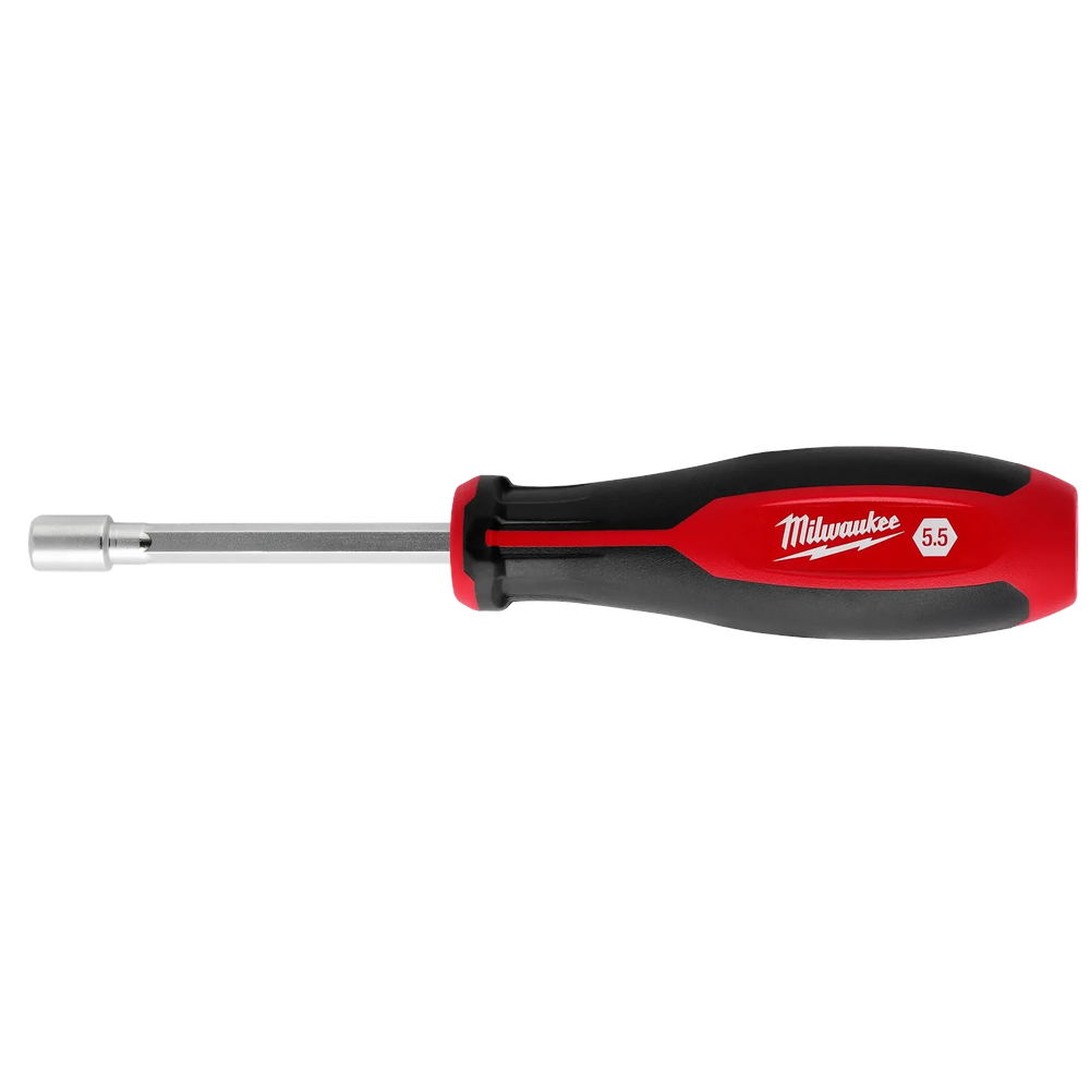 The Milwaukee 5.5mm HollowCore Nut Driver is engineered for maximum versatility on the jobsite, featuring a revolutionary hollow shaft design that allows for unlimited depth in threaded rod and long bolt applications. This professional-grade tool is built with a wrench-ready steel shank that provides additional leverage when tackling stubborn or rusted fasteners. The driver is chrome plated for superior rust protection and features a comfortable tri-lobe handle to ensure a secure grip during high-torque use.