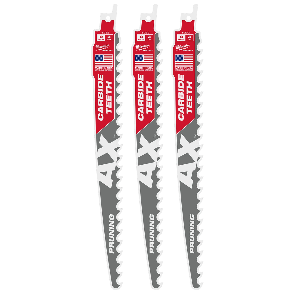 Milwaukee 9 in 3 TPI AX Carbide Teeth SAWZALL Blade for Pruning (3 PK)