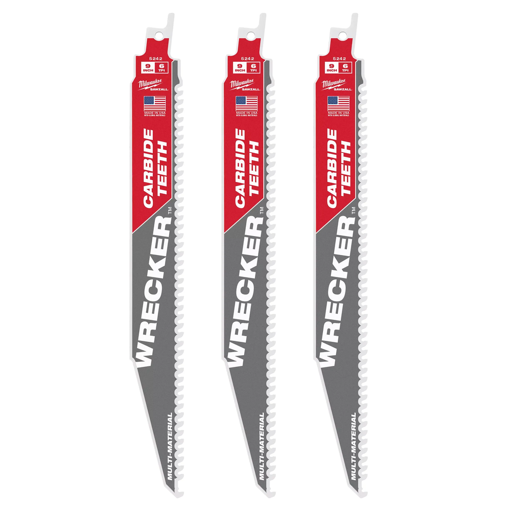 Milwaukee 9 in 6 TPI WRECKER Carbide Teeth SAWZALL Blade for Multi-Material (3 PK)