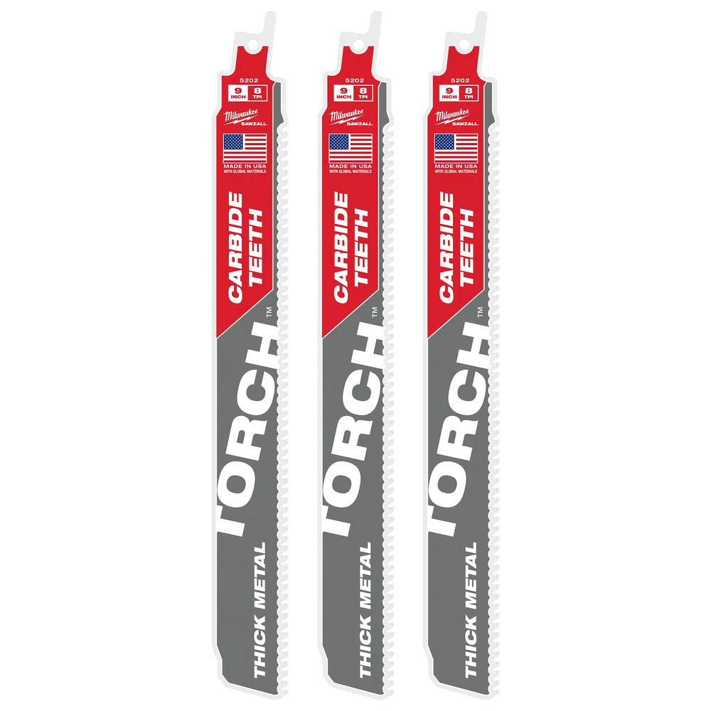 (3) 9' 8 TPI The TORCH with Carbide Teeth SAWZALL Blades (48-00-5302)