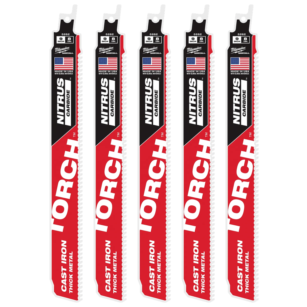 Milwaukee 9 in 8TPI TORCH Nitrus Carbide SAWZALL Blade for Cast Iron (5 PK)