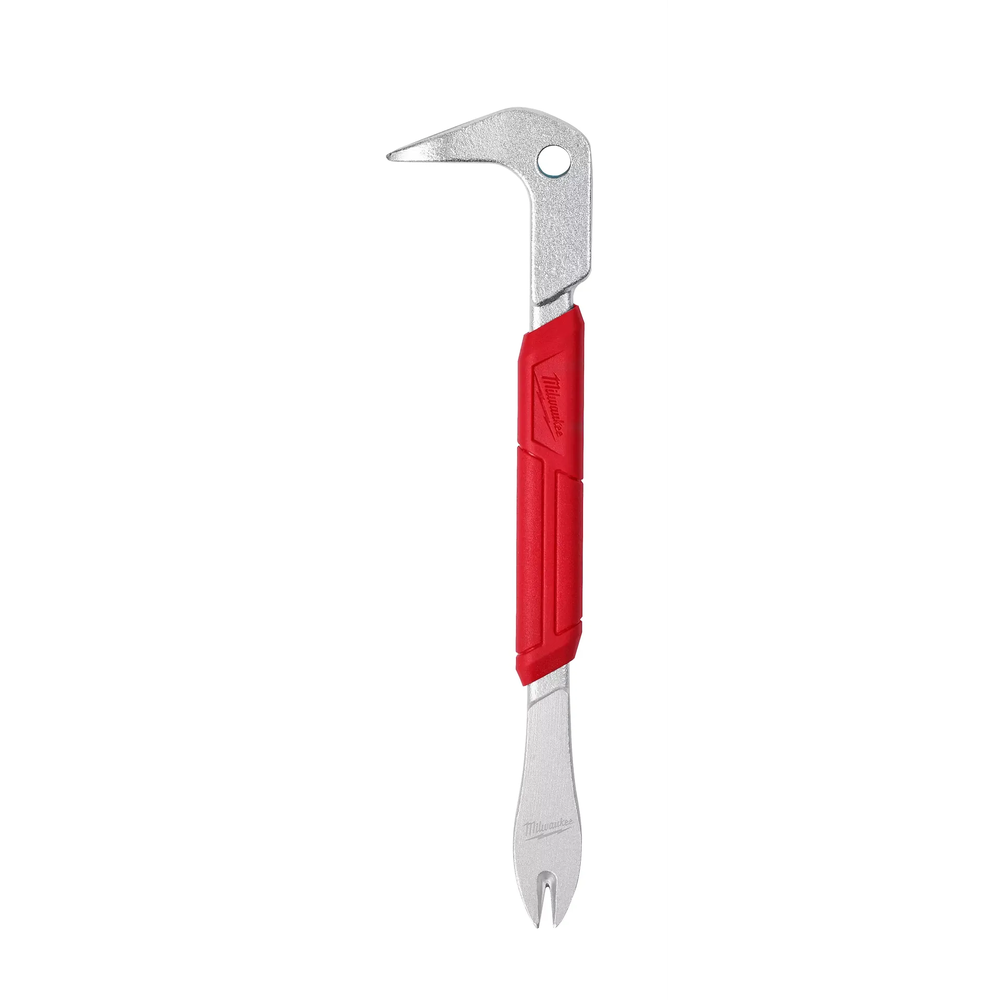The Milwaukee 9' Finish Nail Puller is engineered for maximum efficiency and precision on the job site. It features the SMOOTHPULL high-leverage head design, which allows for rapid nail removal with minimal effort. This tool is built with a SHOCKSHIELD grip that significantly reduces vibration when struck by a hammer, ensuring long-term user comfort and durability. Its sharpened claws and beveled edges provide superior access to embedded nails while minimizing damage to the surrounding work surface.