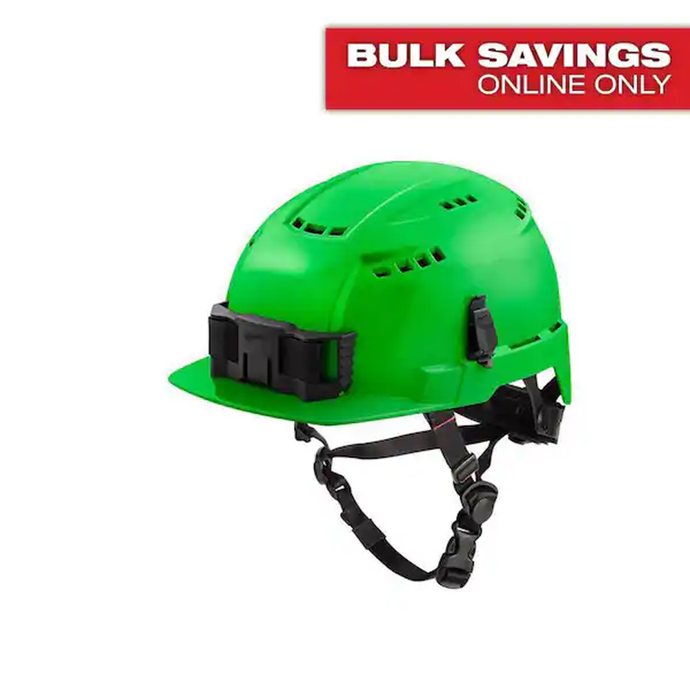The Milwaukee BOLT Type 2, Class C Front Brim Vented Safety Helmet in Forest Green offers superior protection and enhanced comfort for demanding work environments. Engineered for better safety, this helmet provides protection from top and side impacts and is designed to keep users up to 15 degrees cooler than other full brim safety helmets. Its climbing helmet style, combined with a padded suspension and adjustable swinging ratchet, ensures a comfortable and secure fit throughout the day. The helmet is also BOLT accessory compatible, allowing for seamless integration of additional personal protective equipment.