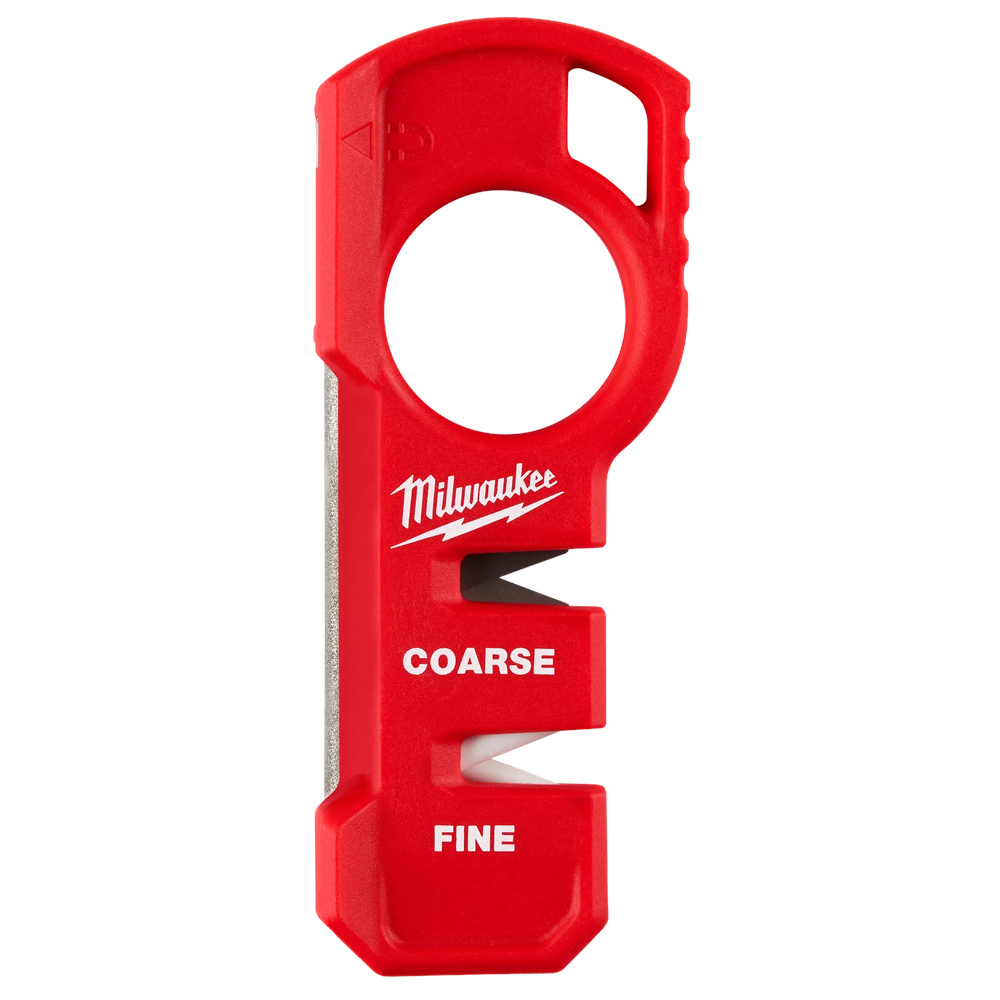 The Milwaukee Compact Knife Sharpener is a versatile jobsite tool designed to keep your blades razor-sharp with ease. It features three distinct sharpening surfaces, including coarse carbide for quick edge setting and fine ceramic for a finished polish, making it compatible with most knives. This pull-through sharpener is built for portability with a compact design that fits comfortably in a pocket or tool belt. The integrated magnetic base and tether-ready lanyard hole ensure convenient storage and safety on the jobsite.