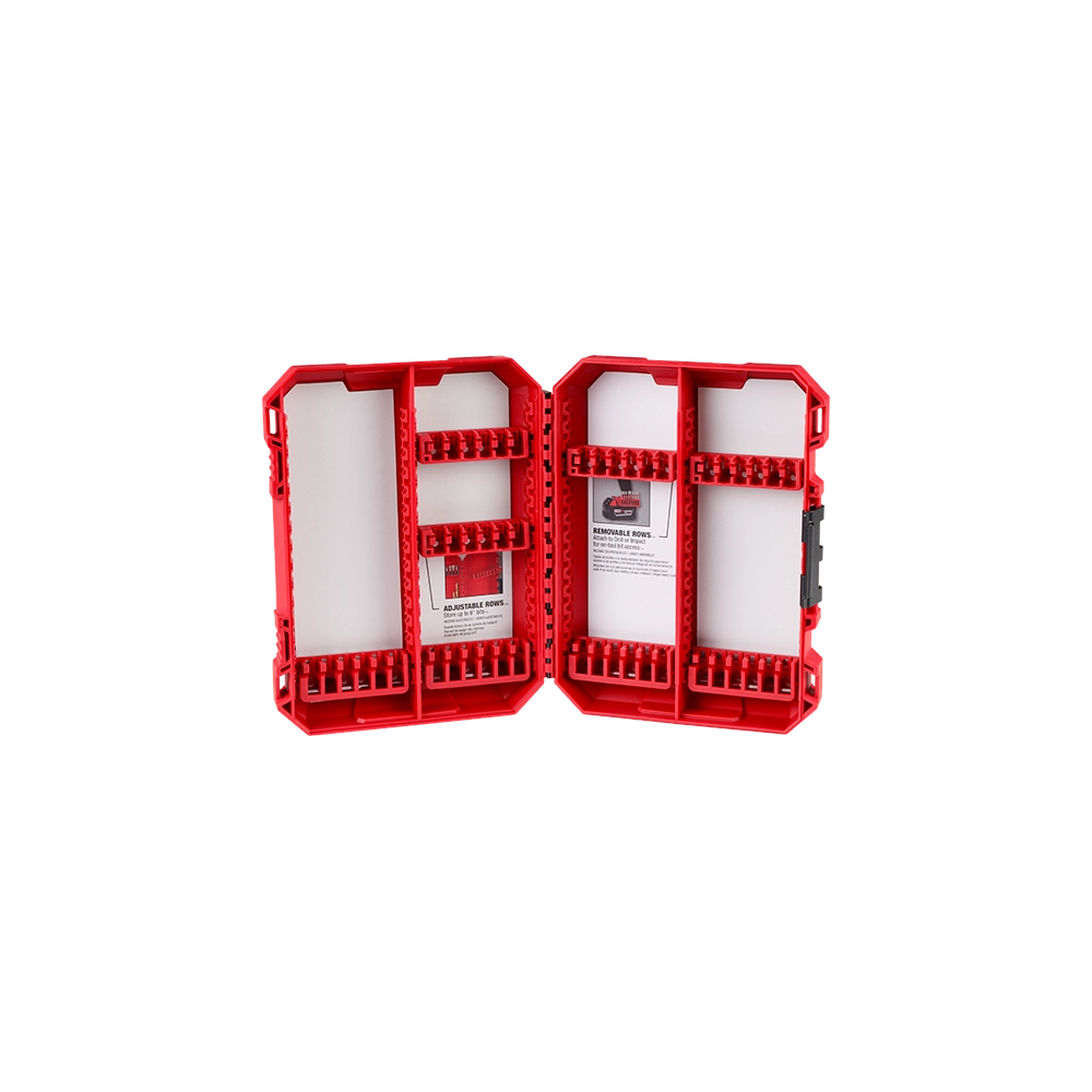 The Milwaukee Customizable Large Case for Impact Driver Accessories offers a highly versatile storage solution specifically designed for integration with the PACKOUT modular system. This durable case allows professionals to personalize their accessory storage by re-positioning or removing individual rows to accommodate varying bit lengths and types. Built with heavy-duty polypropylene and a reinforced latch, it provides superior protection for your high-performance driver and drill bits in the most demanding jobsite environments.