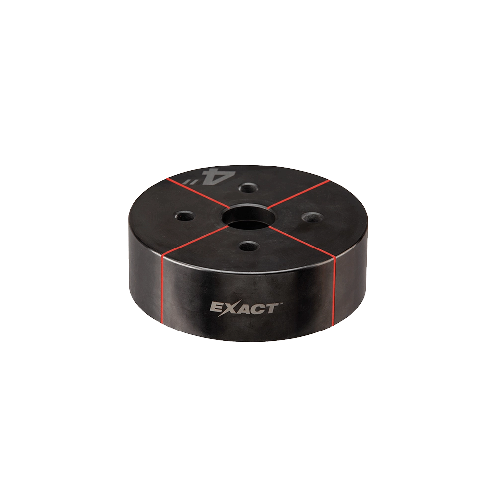 The Milwaukee EXACT 4' Die is a heavy-duty tool designed for punching 4' conduit holes in both mild and stainless steel materials. It features laser-engraved crosshairs for precise alignment with pre-drawn marks, and slug removal ports for efficient operation. This die is engineered to work seamlessly with Milwaukee's FORCE LOGIC knockout kits, improving setup speed and reducing user fatigue. Its robust construction and innovative features make it a valuable asset for contractors.