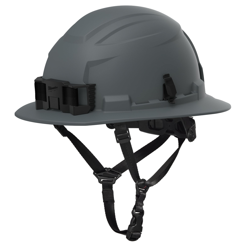 Introducing the Milwaukee FR GY FL BRM HLMT CLS E CST, a Type 2, Class E Full Brim Safety Helmet designed for superior protection and unparalleled comfort. This helmet is engineered to be up to 15 degrees cooler than other full brim helmets on the market and is the lightest weight option available, ensuring you stay comfortable all day. It provides robust protection against both top and side impacts, and its BOLT Accessory Compatible design allows for secure integration of additional personal protective equipment and accessories. The helmet also features a comfortable padded suspension with an adjustable swinging ratchet for a customizable fit and an antimicrobial sweatband to manage odor and bacteria.