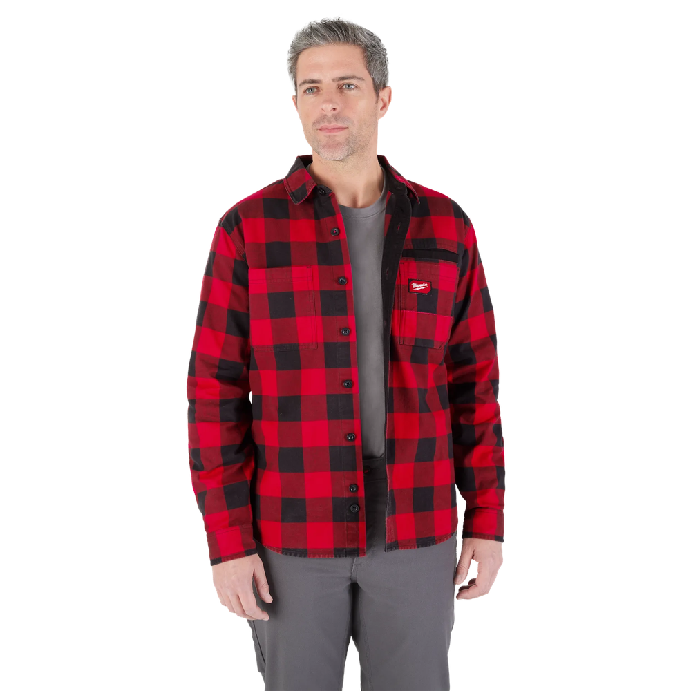 The Milwaukee GRIDIRON Flannel Shirt is engineered to survive the most demanding jobsite conditions while providing the comfort of a classic work shirt. Constructed from heavyweight 100% cotton fabric, this shirt offers exceptional durability and wind resistance for all-day protection. It features canvas-reinforced high-wear zones and double-stitched seams to ensure it outlasts standard flannel garments. This versatile layer is designed to be worn alone or over other clothing, making it a reliable choice for professional tradespeople seeking both function and rugged style.