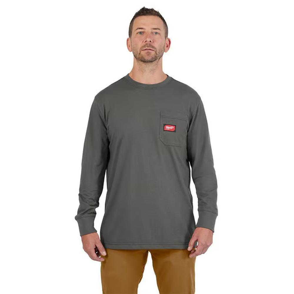 Milwaukee GRIDIRON Long Sleeve Pocket T-Shirt - Gray, Medium