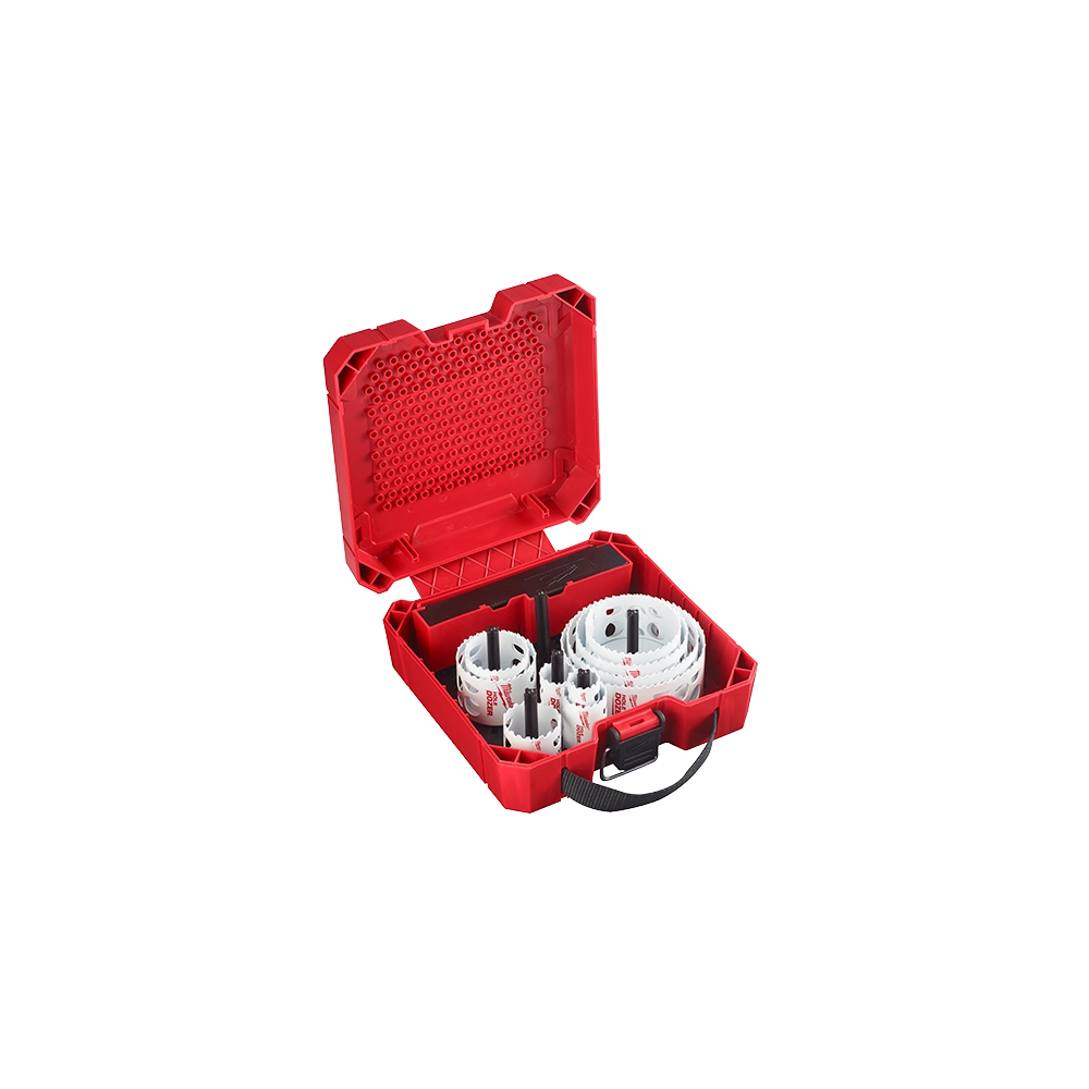 The Milwaukee HOLE DOZER 13-Piece Electrician's Hole Saw Kit is engineered for maximum durability and efficiency in metal applications. Featuring a new 3.5 TPI tooth design, these bi-metal hole saws offer the longest life and an industry-exclusive Lifetime Tooth Break Warranty [1, 2]. The ALL-ACCESS SLOTS are designed to quickly remove material plugs, increasing productivity by minimizing downtime between cuts [1, 2]. Enhanced pilot visibility ensures accurate placement, while faster chip ejection keeps the cutting process cool [1, 2]. The thermoset coating further optimizes performance, allowing for faster cutting and delivering up to 25% more holes per charge, especially when used with cordless tools [1, 2].