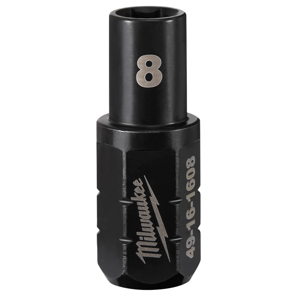 The Milwaukee INSIDER Box Ratchet Socket 6 Point 8mm (49-16-1608) is designed for unrivaled access in the tightest spaces, exclusively compatible with the M12 FUEL INSIDER Box Ratchet. Its low-profile design and pass-through capability (up to 15mm or 9/16) allow for efficient work where traditional sockets can't reach. Featuring dual-sided laser etched markings for quick size identification and a dual retention groove system for enhanced accessibility, this socket is engineered to reduce bolt rounding and stripping.