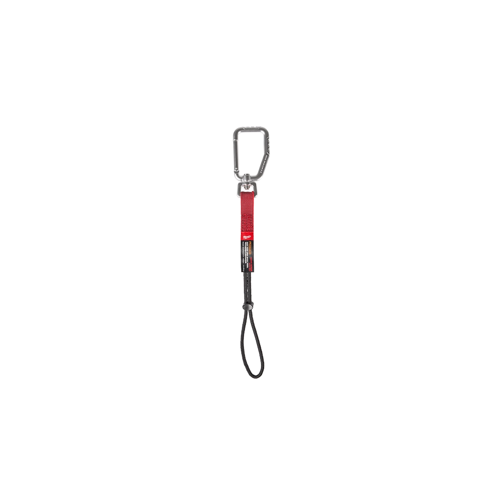 The Milwaukee Lineman's Tool Hang Strap is a heavy-duty utility accessory engineered to maximize organization and efficiency for professionals working in utility truck buckets. It features a large-opening, swiveling metal carabiner that allows for effortless tool attachment while preventing strap twisting and tangling during high-angle tasks. Designed with a non-locking gate, the strap ensures rapid, one-handed access to tools even when users are wearing thick, high-voltage insulated rubber gloves. This durable tethering solution is built to withstand harsh outdoor environments and can securely support impacts, drills, and hydraulic cutters weighing up to 15 lbs.