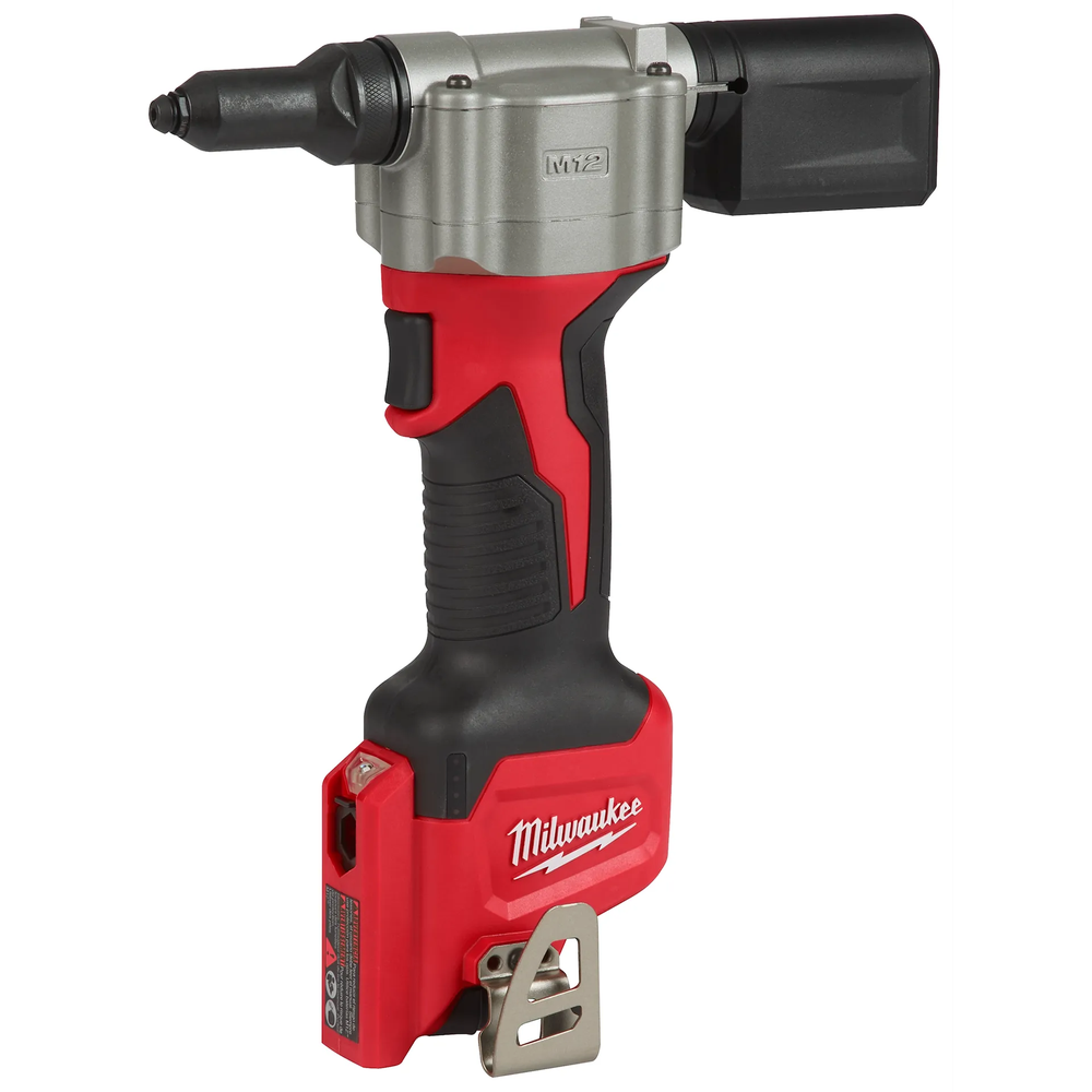 The Milwaukee M12 Rivet Tool is a professional-grade cordless solution designed to provide fast and easy riveting without the need for compressors or hoses. This compact tool can pull up to 3/16' stainless steel rivets and offers enough power to handle 450 1/8' steel rivets on a single charge using an M12 1.5Ah battery. Its ergonomic design significantly reduces muscle strain and fatigue, making it an ideal replacement for manual and pneumatic riveting tools in tight jobsite conditions.