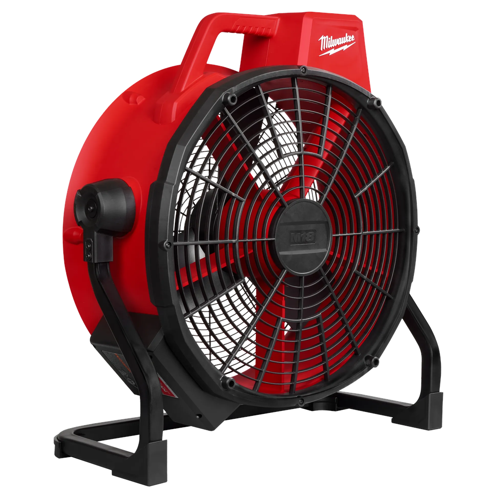 The Milwaukee M18 Brushless 18' Fan delivers powerful corded performance with the total mobility of the M18 cordless system, making it an essential tool for any job site. Featuring a high-efficiency brushless motor and an 18-inch blade, it provides air circulation over 50 feet at speeds up to 13.5 MPH for rapid cooling, drying, or ventilation. Its robust construction includes a reinforced metal base and shroud design that offers impact, water, and dust resistance to withstand the most demanding environments.