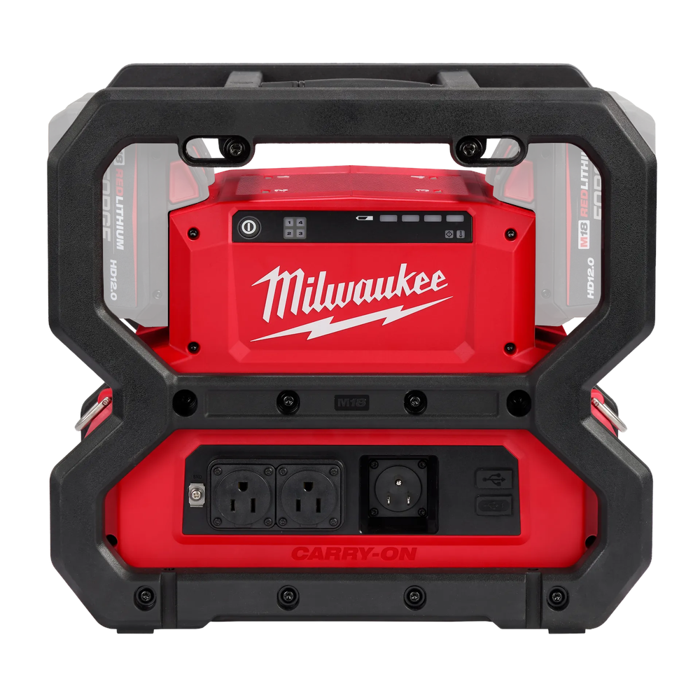 The Milwaukee M18 CARRY-ON 3600W/1800W Power Supply provides the most versatile 15A power for the jobsite, delivering reliable energy with significantly less hassle than gas alternatives. This compact and emissions-free unit is ideal for indoor use, confined spaces, and utility carts where traditional generators cannot operate. With 3600 starting watts and 1800 running watts of pure sine wave energy, it safely powers everything from demanding trade tools like table saws to sensitive electronics. By utilizing any combination of four M18 batteries, users can maintain productivity without the noise or maintenance of gas-powered equipment.