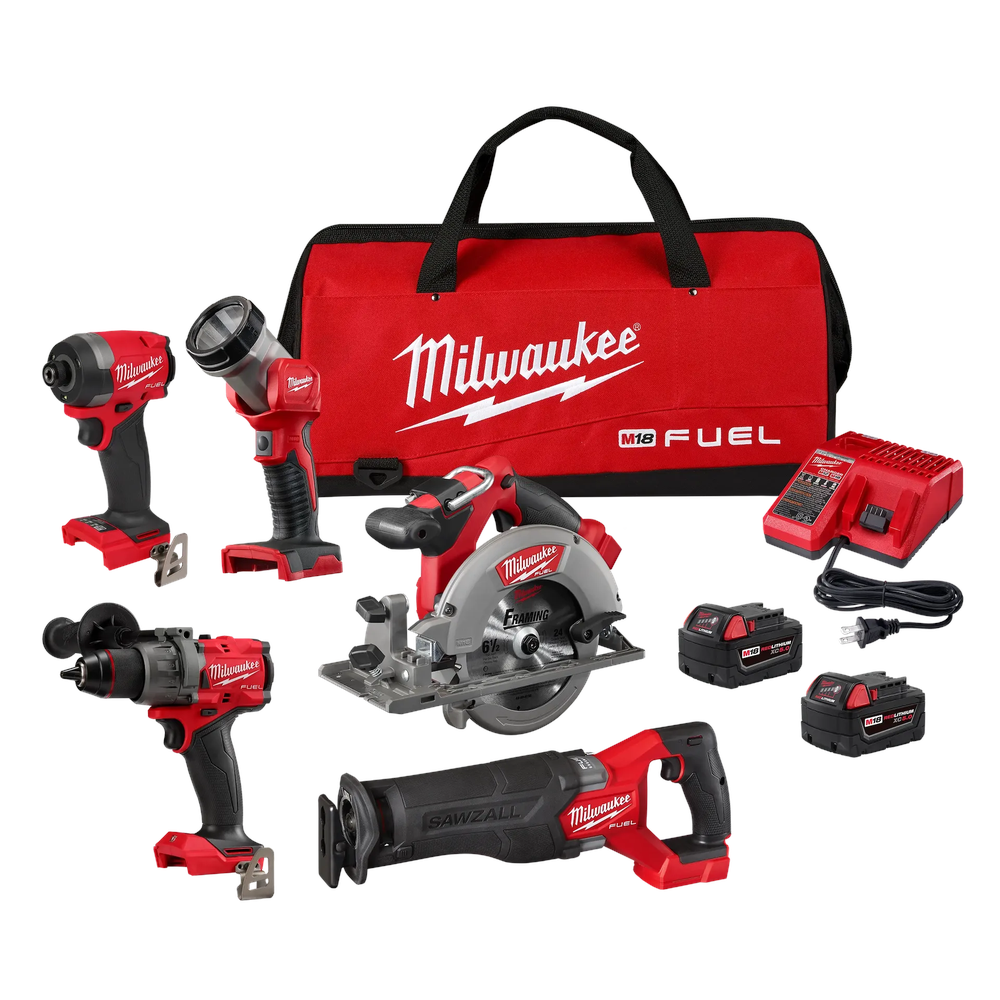 The Milwaukee M18 FUEL 5-Tool Combo Kit provides professional users with the industry's most advanced 18V cordless drilling, fastening, and cutting solutions. This high-performance set features five M18 FUEL tools powered by Powerstate Brushless Motors and Redlink Plus Intelligence to ensure maximum power, thermal protection, and extended motor life. Ideal for heavy-duty jobsites, the kit includes a versatile range of tools and high-capacity Redlithium XC5.0 batteries to maximize productivity and runtime.