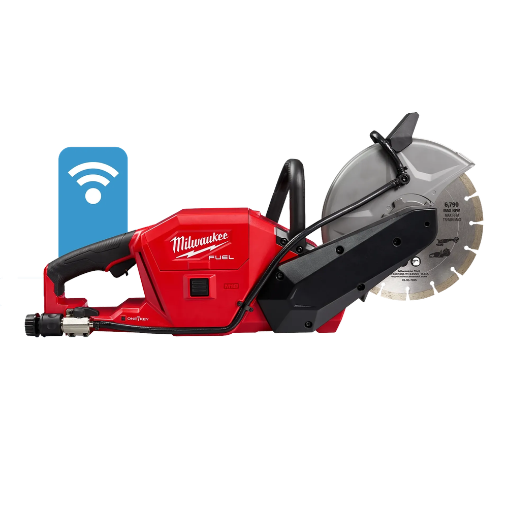 The Milwaukee M18 FUEL 9' Cut-Off Saw w/ ONE-KEY is a powerful, cordless solution designed to cut reinforced concrete, metal, and masonry with ease. Weighing up to 50% less than comparable gas-powered saws, it significantly reduces user strain and fatigue during overhead or long-duration cuts. By running on the M18 battery platform, this saw eliminates the hassles of gas maintenance, emissions, and pull-starts, making it safe for indoor and outdoor use. With integrated ONE-KEY technology, users can wirelessly track, manage, and secure their tool from a smartphone or tablet.