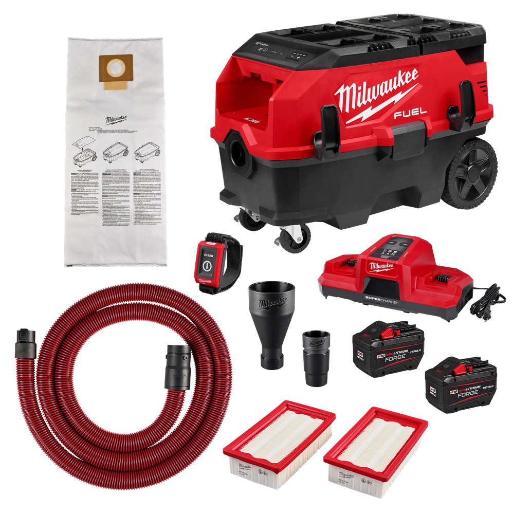 The Milwaukee M18 FUEL 9 Gallon Dual Battery Dust Extractor sets a new standard for jobsite cleanliness and productivity by combining corded performance with cordless versatility. This extractor features a dual-power source that delivers 125 CFM in cordless mode and 175 CFM when plugged in, ensuring high-performance suction for the most demanding applications. Optimized for concrete, drywall, and wood dust, it integrates seamlessly with the PACKOUT modular storage system for unmatched mobility and storage convenience.