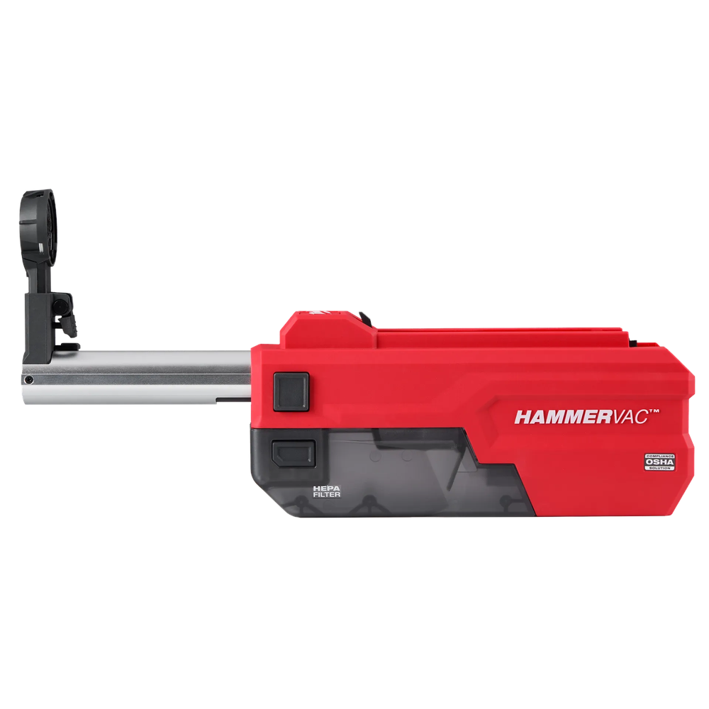 The Milwaukee M18 FUEL HAMMERVAC 1-1/4' Dedicated Dust Extractor (2916-DE) is an advanced, on-board dust management solution specifically engineered for the M18 FUEL 1-1/4 SDS Plus D-Handle Rotary Hammer. Featuring a compact, inline design, it connects directly to the tool and is powered by the M18 battery system, eliminating the need for external vacuum units or cords. Although the model number is sometimes associated with wireless communication due to its host tool's ONE-KEY compatibility, this product is a heavy-duty dust extractor designed to maintain a cleaner and safer workspace in concrete drilling applications.
