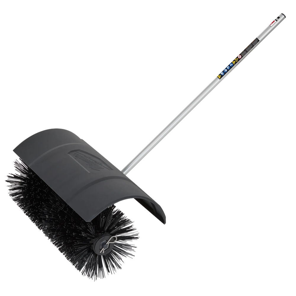 The Milwaukee M18 FUEL QUIK-LOK Bristle Brush Attachment is designed for efficient debris removal from hard surfaces, making it ideal for professional landscapers and jobsite cleanup. Its optimized bristle design effectively tackles compacted mulch, wet dirt, and heavy debris, ensuring a clean finish with longer service life. The attachment features a specialized guard for superior material containment and a protected drive shaft for enhanced durability, maximizing professional return on investment. With a 23-inch clearing width, it significantly reduces labor time by covering more ground in a single pass.