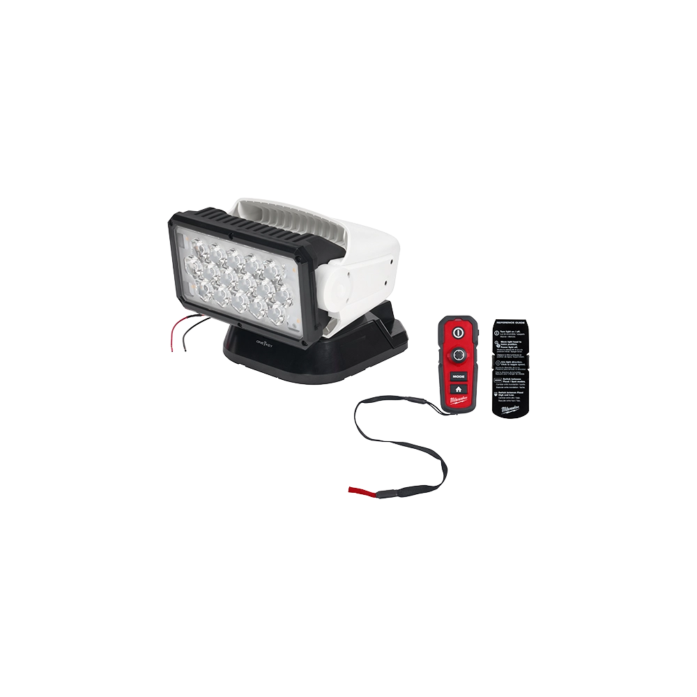 The Milwaukee M18 Utility Remote Control Search Light is a high-performance lighting solution designed for power utility professionals to spot lines and flood fields from distances of up to 1,250 yards. This powerful unit delivers 4,250 lumens of TRUEVIEW High Definition Output, providing exceptional visibility and color accuracy during night-shift inspections and emergency maintenance. It features a weather-resistant, IP56-rated design to survive harsh outdoor environments and can be powered by either an M18 battery or a 12V vehicle hardwire connection.