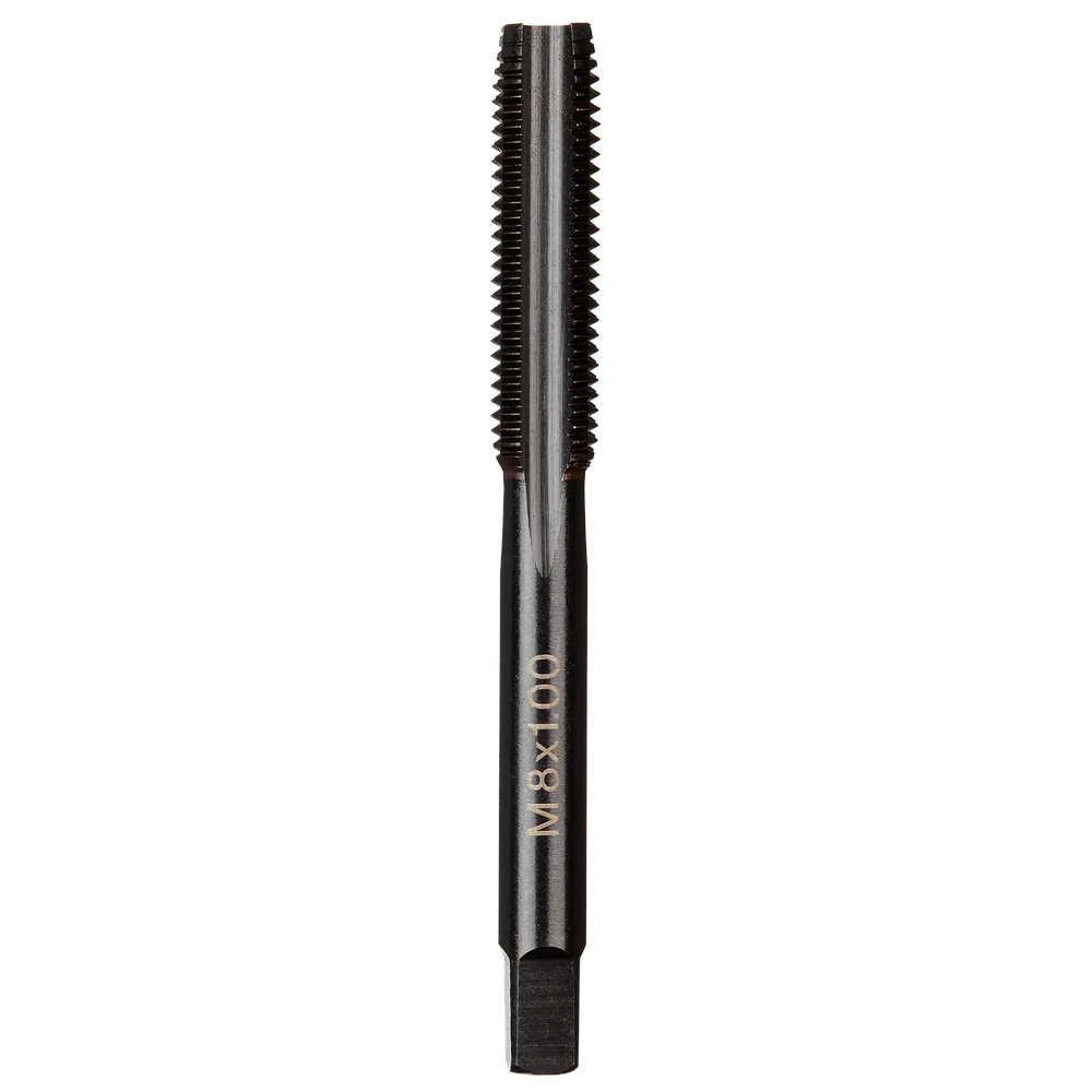 The Milwaukee M8-1.00 mm Straight Flute Plug Tap (49-57-5145) is engineered for precision and durability in creating or repairing internal threads. Crafted from High Carbon Steel with a protective Black Oxide coating for corrosion resistance, this tap features laser-etched sizing for clear, long-lasting markings. Its straight flute design is ideal for through-hole threading in common metal applications, ensuring clean and accurate results.