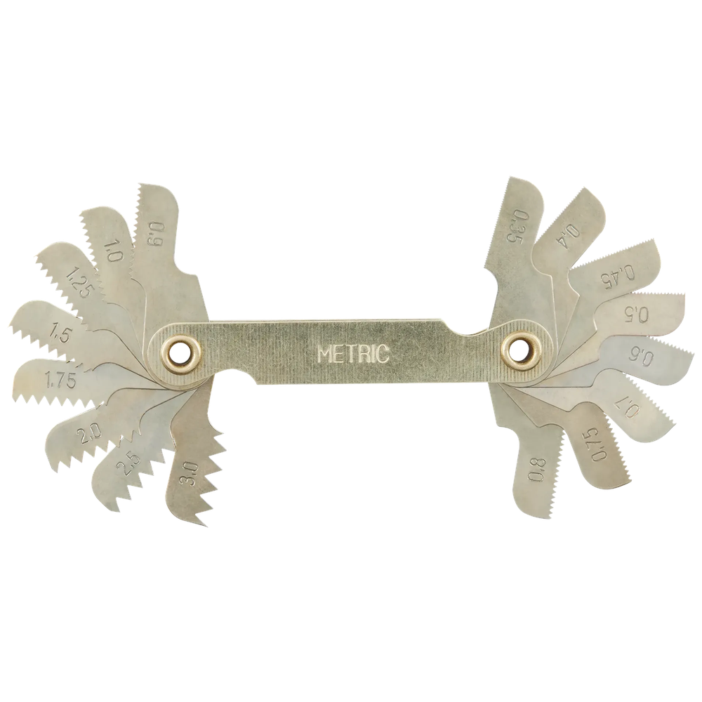 Measures threads from 0.35mm to 3.00mm