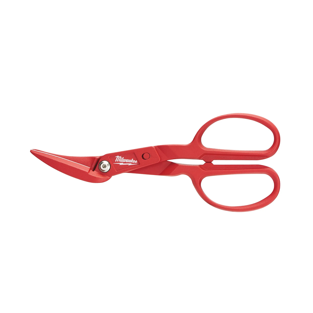 The Milwaukee Offset Compound Tinner is engineered for high-performance cutting through tough materials like metal lathe, vinyl, and aluminum. It features a unique compound leverage mechanism that delivers up to twice the cutting power of traditional snips, significantly reducing user fatigue during high-volume shearing tasks. The 45-degree offset blades provide superior clearance, keeping hands safely away from sharp material edges while allowing for long, unobstructed continuous cuts in 18-gauge cold rolled or 20-gauge stainless steel.