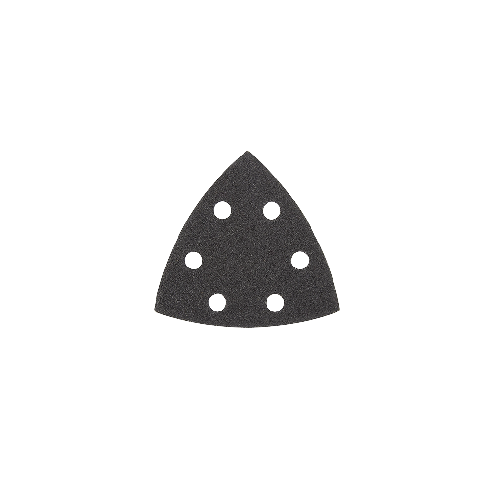 This Milwaukee OPEN-LOK 80 Grit Triangle Sandpaper is designed for use with Oscillating Multi-Tools, offering an efficient solution for detail sanding and reaching difficult areas. The long-lasting silicon carbide abrasive is ideal for working with wood and paint, ensuring fast material removal and a smooth finish. Featuring a secure hook and loop connection for quick changes and universal dust extraction hole placement, these sandpaper sheets are a practical addition to any professional's toolkit.