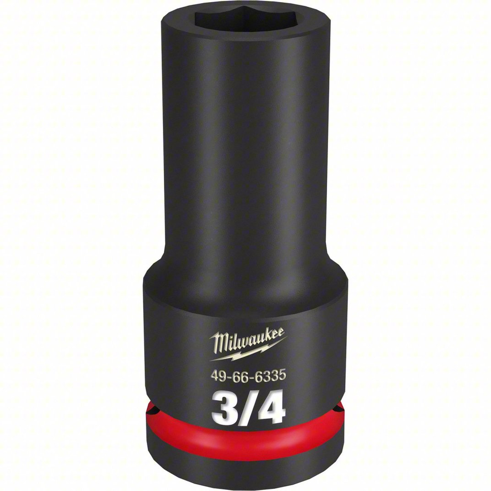 Experience extreme durability and precision with the Milwaukee SHOCKWAVE Impact Duty 3/4' Drive 3/4' Deep 6 Point Socket. Engineered for high-torque applications, this socket features bold, long-lasting, ink-filled markings for quick identification. Its non-slip hex geometry prevents fastener rounding, ensuring a secure grip and extended tool life. Constructed from high-strength forged steel, it's built to withstand demanding heavy-duty use.