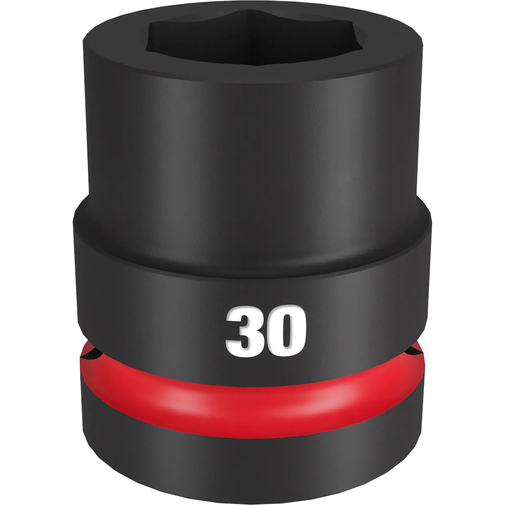 Experience extreme impact durability with the Milwaukee SHOCKWAVE Impact Duty 1' Drive 30MM Standard 6 Point Socket. Engineered for high-torque applications, this socket features bold, long-lasting, ink-filled markings for quick identification and a non-slip hex geometry to prevent fastener rounding. Its high-strength forged steel construction ensures optimized performance in heavy-duty use, while the dual-hole design and ring groove facilitate easy attachment and removal.