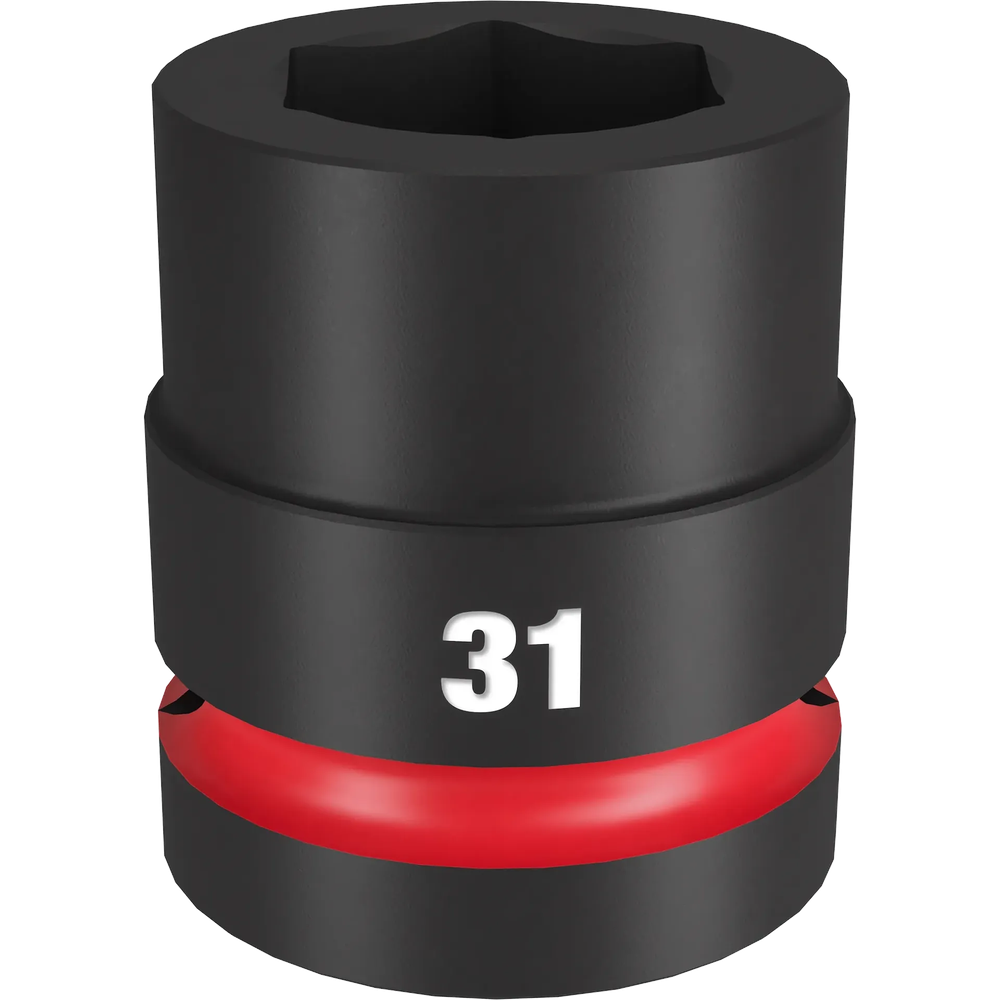 Experience extreme impact durability and the boldest, longest-lasting markings with the Milwaukee SHOCKWAVE Impact Duty 1' Drive 31MM Standard 6 Point Socket. Engineered for high-torque applications, this socket ensures accurate selection every time thanks to its stamped and ink-filled size markings that resist wear. Crafted from high-strength forged steel, it's built for optimized performance in heavy-duty tasks, preventing fastener rounding with its non-slip hex geometry. The dual-hole design and ring groove allow for easy attachment and removal, making it a reliable tool for demanding jobs.