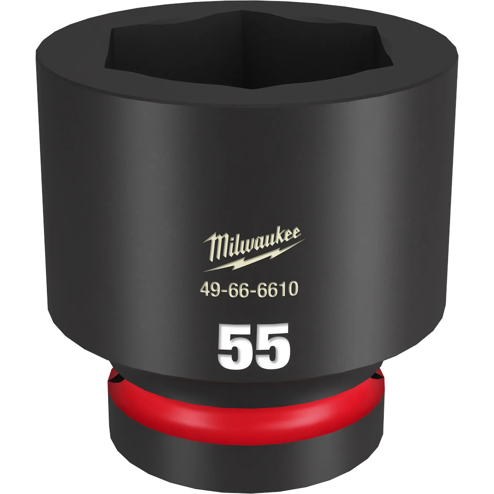 Experience extreme impact durability with the Milwaukee SHOCKWAVE Impact Duty 1' Drive 55MM Standard 6 Point Socket. Engineered for high torque applications, this socket is constructed from high-strength forged steel, ensuring optimized performance and longevity. The stamped and ink-filled size markings provide clear, wear-resistant identification for accurate socket selection every time. Its non-slip hex geometry is designed to prevent fastener rounding, making it a reliable tool for demanding tasks.