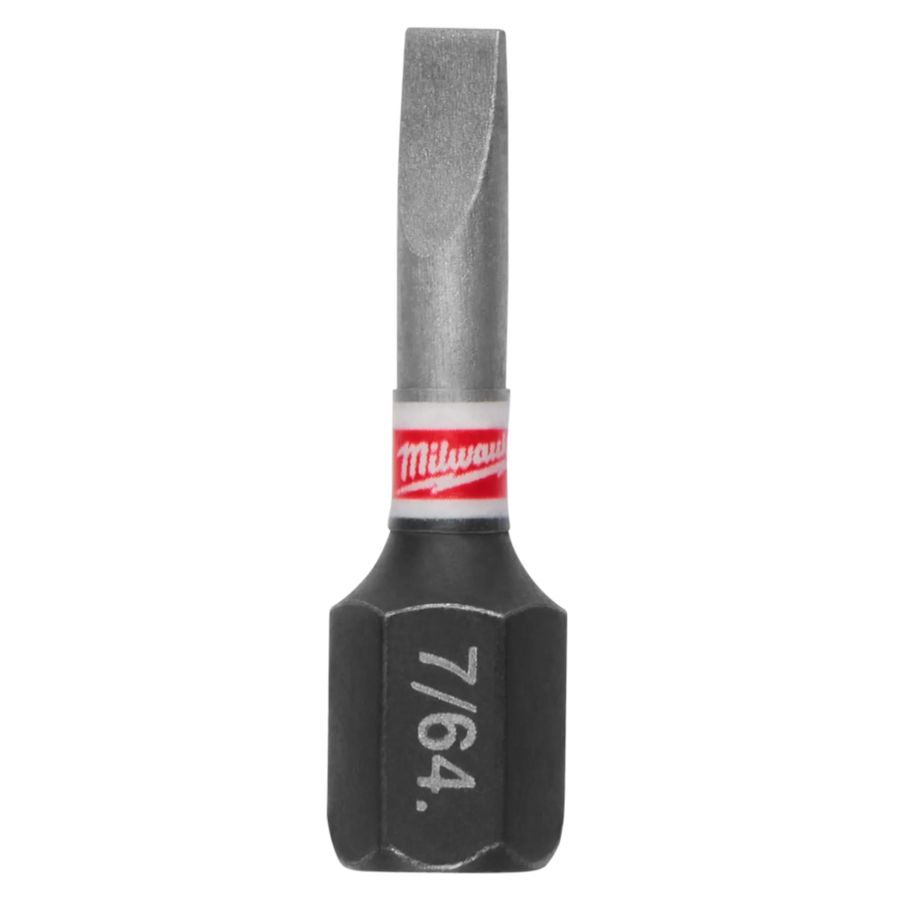 Milwaukee SHOCKWAVE Impact Duty driver bits are engineered to be the most durable, best-fitting driver bits on the market. These 1-inch slotted 7/64' insert bits feature an optimized SHOCKZONE geometry that is unique for each tip type to provide up to 30x longer life and absorb 3x more torque versus other impact bits. The Wear Guard Tip delivers increased wear resistance which protects the fit over the life of the bit, ensuring a precise and consistent driving experience.