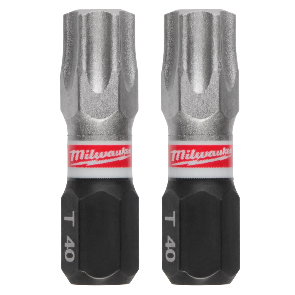 The Milwaukee SHOCKWAVE Impact Duty 1' T40 Insert Bits are engineered to be the most durable, best-fitting driver bits on the market. Featuring a Wear Guard Tip, these bits provide increased wear resistance that protects the fit over the entire life of the bit. The optimized Shockzone shanks are uniquely designed for each tip type to absorb peak torque and prevent breaking, delivering up to 50X life compared to standard impact bits.