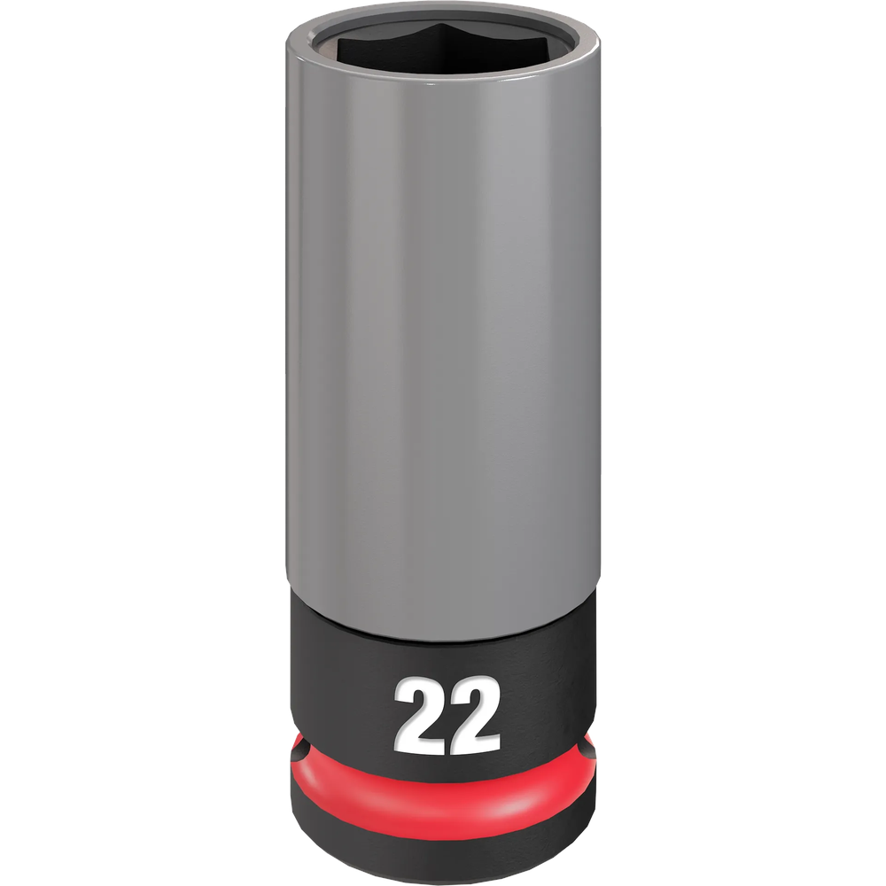 Engineered for professional tire service, the Milwaukee SHOCKWAVE Impact Duty 1/2 Drive 22MM Metric Lug Nut Wheel Socket (49-66-7807) offers superior protection for your rims. Its durable ARMOR-GUARD sleeve is crafted from premium plastic to prevent cracking and shredding, safeguarding even high-end wheels during rapid tire changes. The thin-walled design allows for easy access in tight wheel assemblies, while an internal non-marring plastic insert protects lug nuts from damage during high-torque operations. Built with high-strength forged steel, this socket is optimized for heavy-duty applications and meets ASME industry standards.