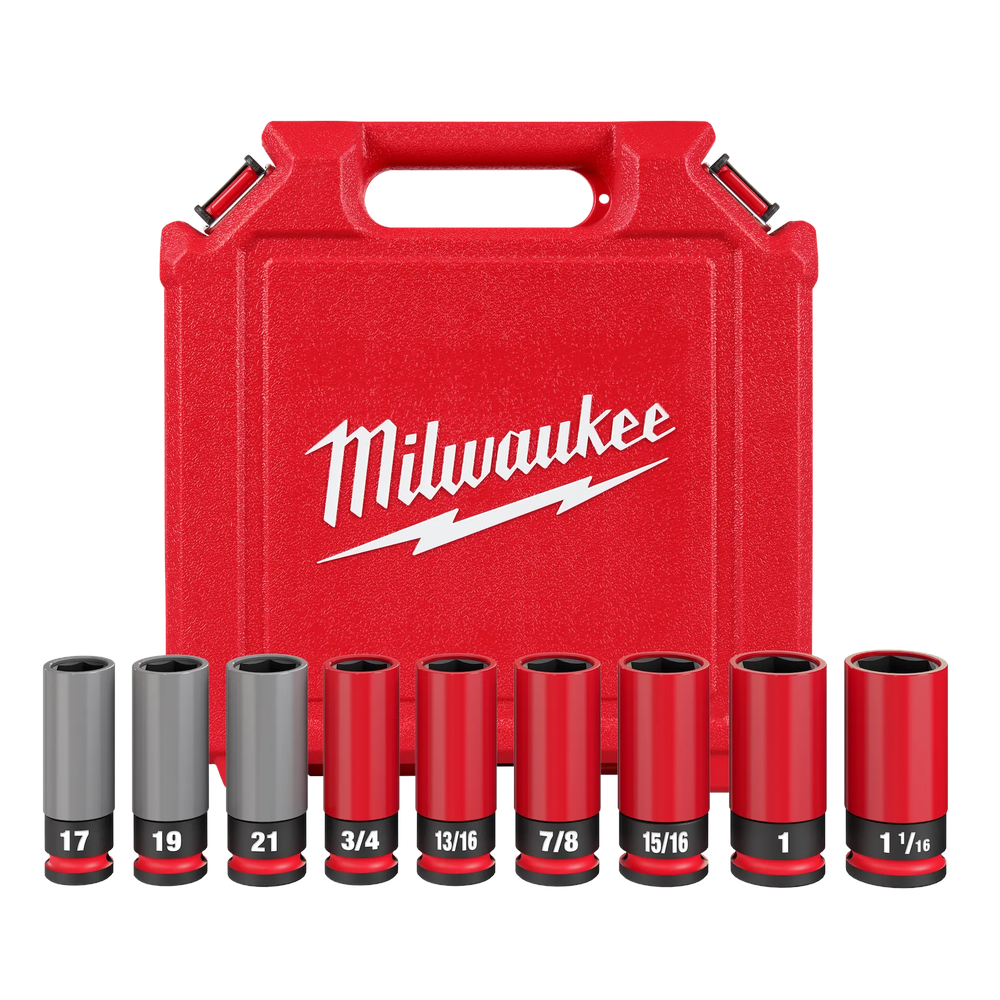 Experience superior rim protection and efficient wheel changes with the Milwaukee SHOCKWAVE Impact Duty 1/2 Drive SAE & Metric 9PC Lug Nut Wheel Socket Set. Engineered with a durable, non-marring ARMOR-GUARD sleeve, these sockets prevent damage to your wheels during installation and removal. The thin-walled design ensures easy access in tight spaces, while color-coded sleeves (Gray for Metric, Red for SAE) simplify socket selection. Built from high-strength forged steel, this set is optimized for heavy-duty applications and impact wrench use, providing long-lasting performance and reliability for automotive professionals and DIY enthusiasts alike.