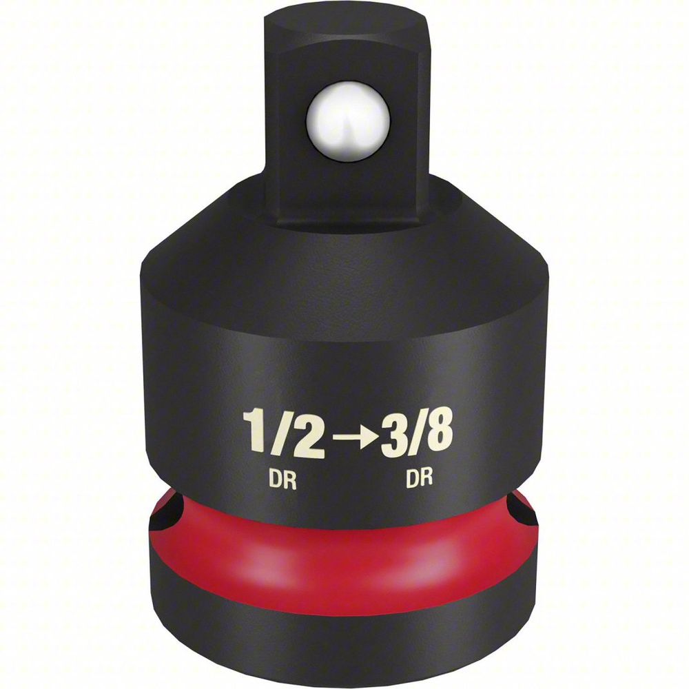 Enhance your tool's versatility with the Milwaukee SHOCKWAVE Impact Duty 1/2' Drive to 3/8' Drive Socket Reducer. Engineered for high torque applications, this adapter seamlessly converts your 1/2' drive tools to accept 3/8' drive impact sockets. Constructed from forged chromium-molybdenum steel, it guarantees exceptional durability and longevity, even under demanding conditions. Its design features laser-etched markings for quick size identification and a dual-hole design with a ring groove for easy attachment and removal, making it an essential accessory for any professional or DIY enthusiast.