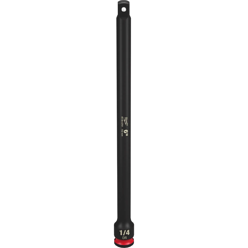 The Milwaukee SHOCKWAVE Impact Duty 1/4' Drive 6' Extension is designed to provide enhanced access to hard-to-reach areas while offering exceptional durability for high-torque applications. Its forged impact steel construction ensures structural integrity under heavy loads, and laser-etched markings allow for quick identification of size and length. The dual-hole design and ring groove facilitate easy attachment and removal, making it a reliable component for demanding fastening tasks. This extension is optimized for use with 1/4' drive impact wrenches, ensuring efficient power transfer and minimizing the risk of breakage during intensive use.