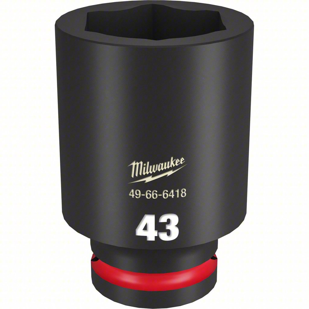 Experience extreme impact durability with the Milwaukee SHOCKWAVE Impact Duty 3/4' Drive 43MM Deep 6 Point Socket. Engineered for high torque applications, this socket features bold, long-lasting markings for easy identification and a non-slip hex geometry to prevent fastener rounding. Crafted from high-strength forged steel, it offers optimized performance in heavy-duty scenarios. The dual-hole design and ring groove ensure simple attachment and removal, making it a reliable choice for demanding tasks. It's backed by Milwaukee's Lifetime Guarantee and meets ASME industry standards.
